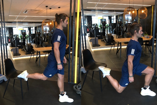 - Doe 3 sets van 20 herhalingen en herhaal de lunge met het andere been.